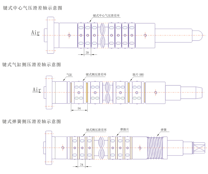 可組成中心氣壓式,氣動側(cè)壓式,機械側(cè)壓高性能滑差軸,中心氣壓摩擦轉(zhuǎn)動軸,可以獲得機械損失小,按空氣壓比例得出準確轉(zhuǎn)矩,并能在大范圍內(nèi)精確地控制張力。應用范圍最廣,鍵齒可以抓緊任何管芯。